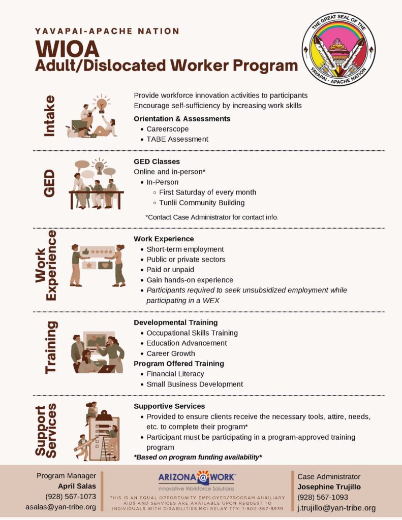 The Yavapai-Apache Nation Workforce Program is offering employment and career support services for adults through the Workforce Innovation and Opportunity Act (WIOA).