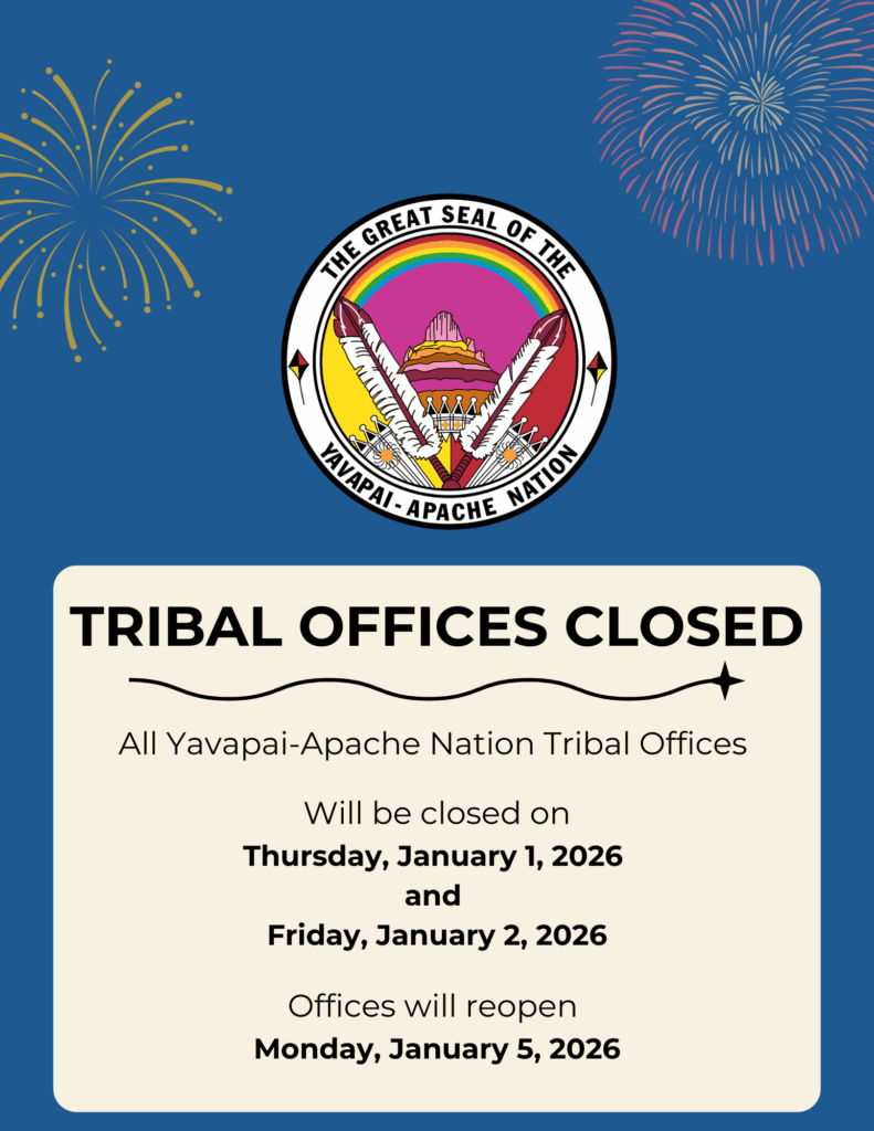 Please be advised that all Yavapai-Apache Nation Tribal Offices will be closed on Thursday, January 1 and Friday, January 2, 2026.