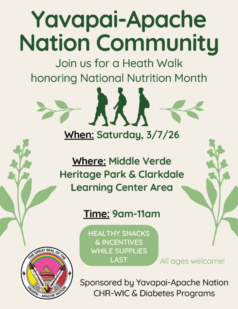 The Yavapai-Apache Nation community is invited to participate in a Health Walk honoring National Nutrition Month.