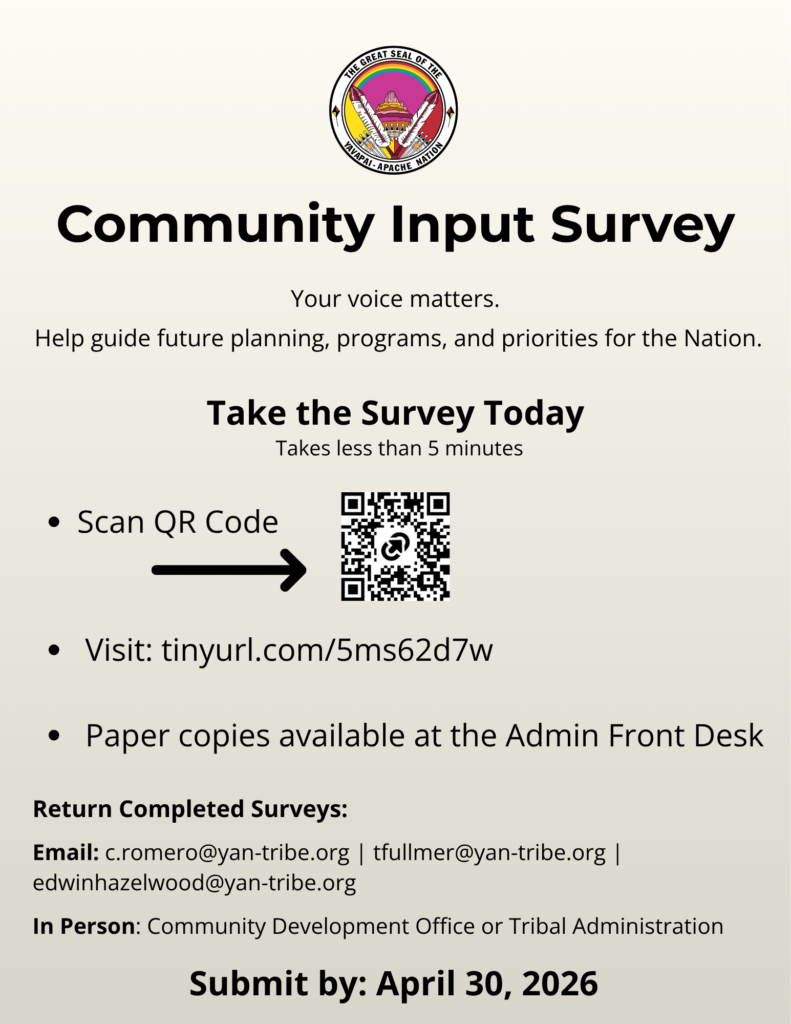 The Yavapai-Apache Nation is seeking input from Tribal Members to help guide future planning, programs, and priorities.