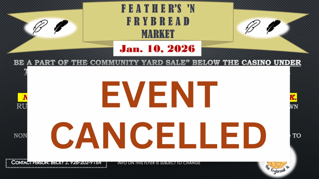 The Feather’s ’N Frybread Market and Sober Society Frybread Sale scheduled for Saturday, January 10, 2026 have been cancelled.