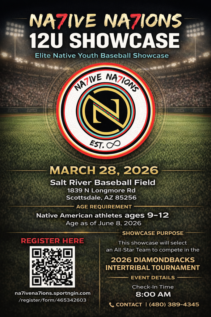 The Yavapai-Apache Nation is sharing the following opportunity for youth interested in participating in the Native Nations 12U Showcase, an elite Native youth baseball event.
