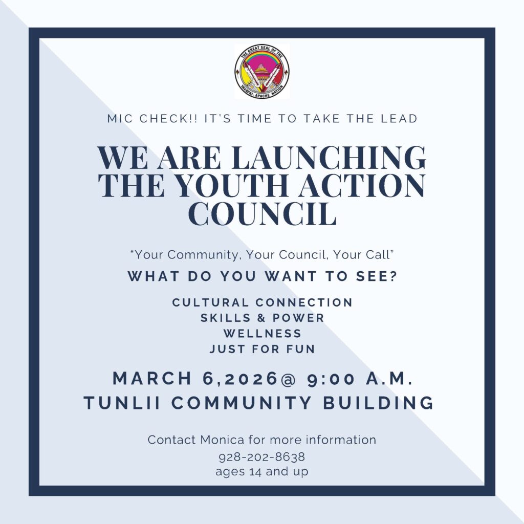 Yavapai-Apache Nation youth ages 14 and up are invited to take part in the upcoming Youth Action Council launch meeting.