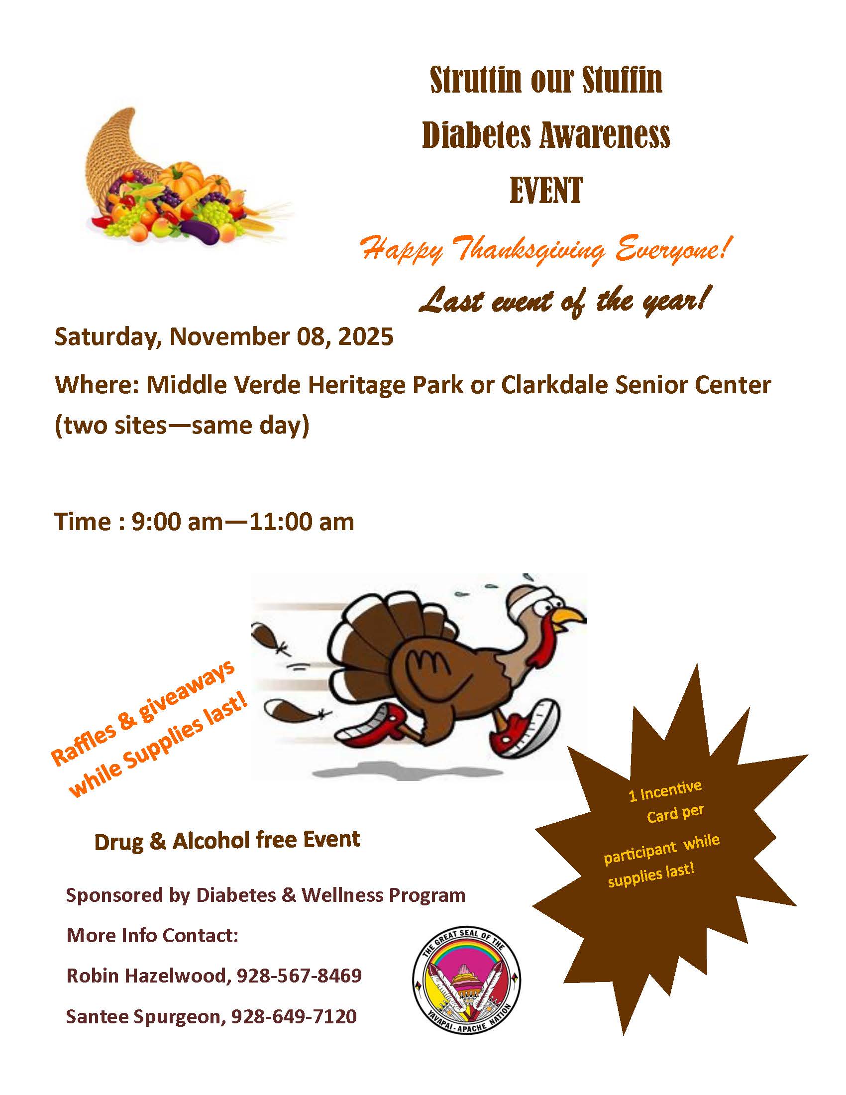 The Yavapai-Apache Nation Diabetes & Wellness Program invites all community members to join us on Saturday, November 8, 2025, from 9:00 a.m. to 11:00 a.m. for the final wellness event of the year.